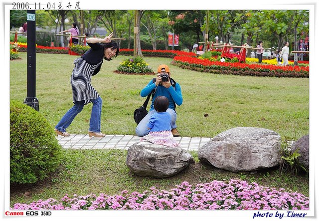 吃完早(午)餐一行人來到大安森林公園~~這時創作比賽區的作品還不多~~不過展覽區都好了~~逛呀逛的~~蠻多可以拍攝的地點~~花也很漂亮~~可惜天氣不是很理想,太陽公公不常出來,雖然帶了反光板不過幫助不大~~-而宸妤今天也比較不配合~~為了逗他笑我們三個大人可是用盡方法不計形象的耍寶演出~~~